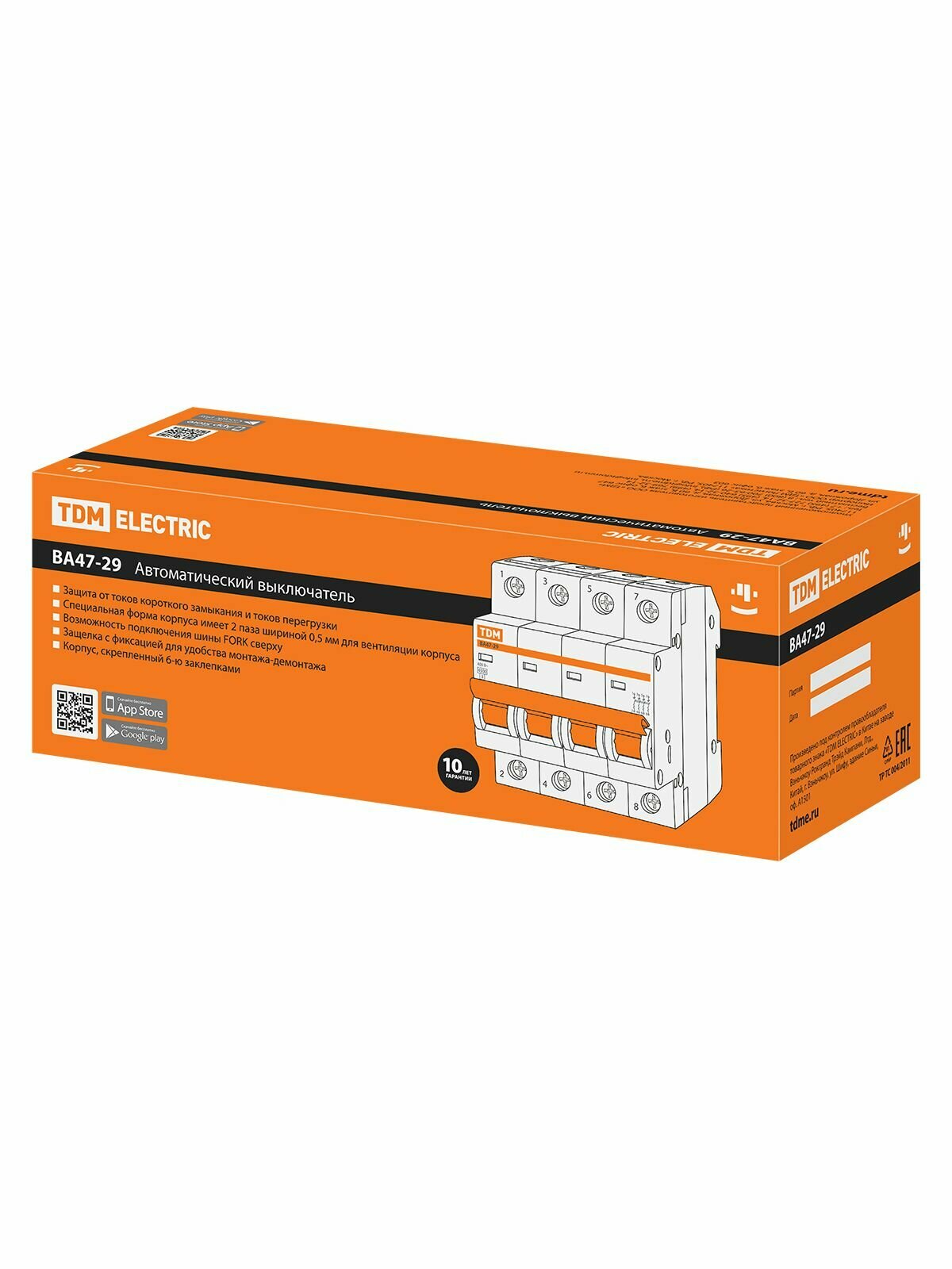Автоматический выключатель ВА47-29 4Р 2А 4,5кА х-ка С TDM, TDM ELECTRIC информация: