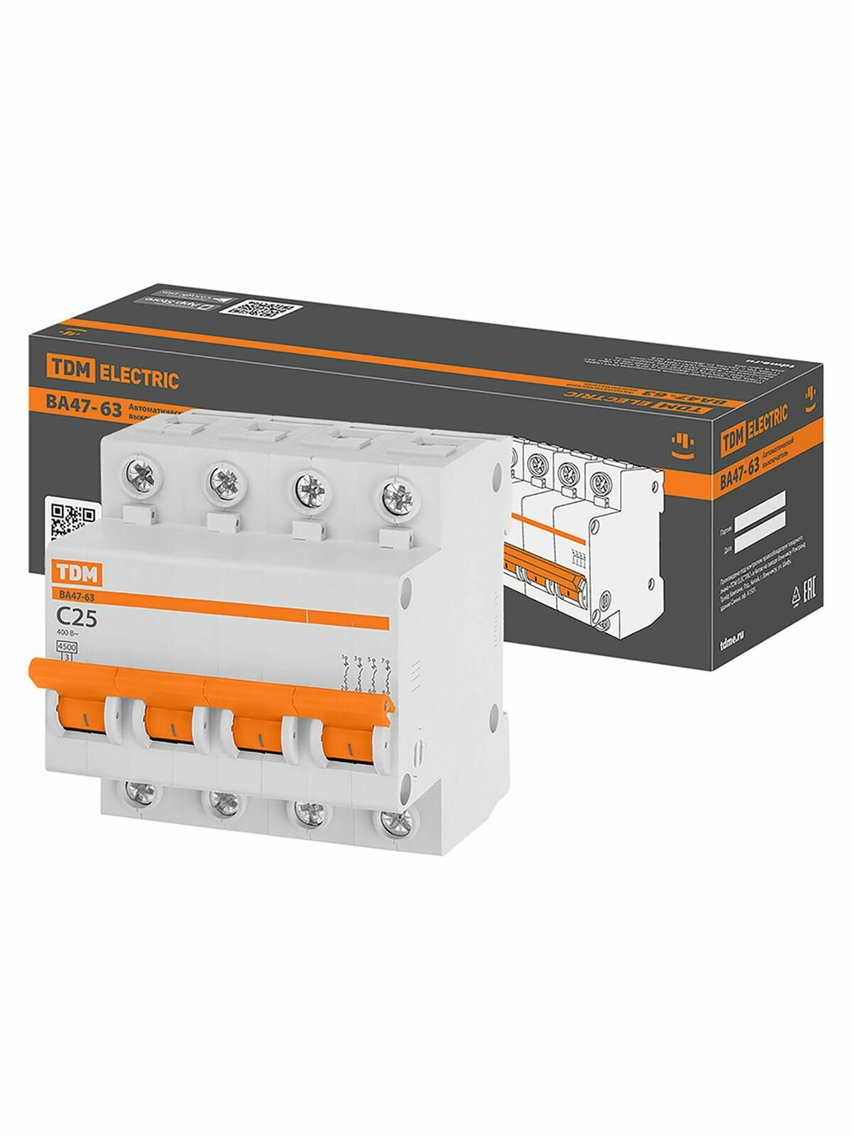 Выключатель автоматический ВА47-63 4Р 25А 4,5кА х-ка С TDM информация: