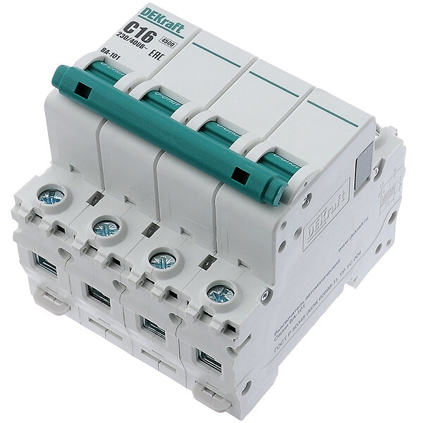 Выключатель автоматический четырехполюсный 16А С ВА-101 4.5кА 11090DEK DEKraft информация: