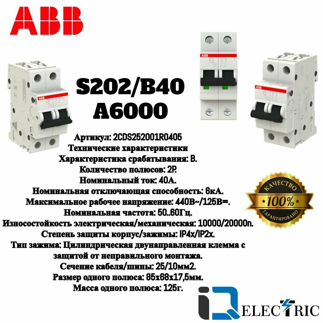 2-полюсный автоматический выключатель ABB S202 B40 2CDS252001R0405 . информация:
