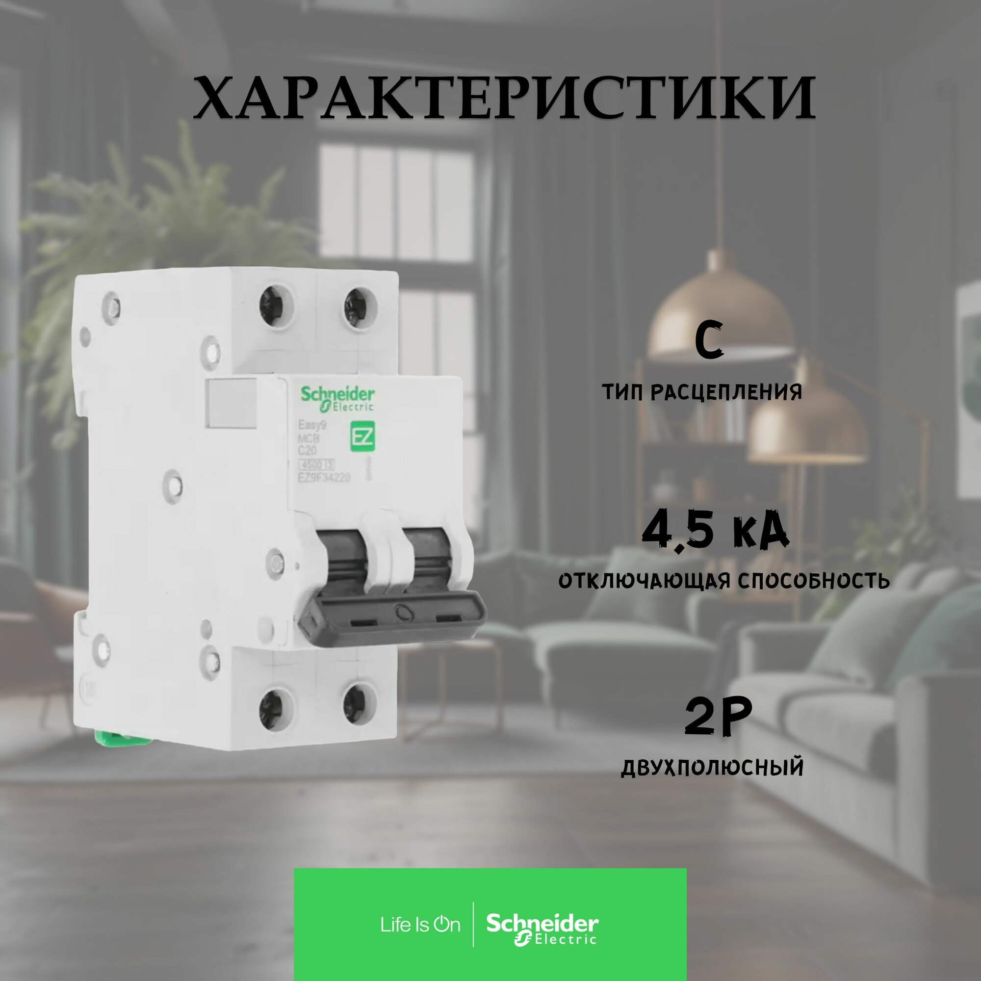 Автоматический выключатель Schneider Electric Easy9 2P 20А характеристика C
