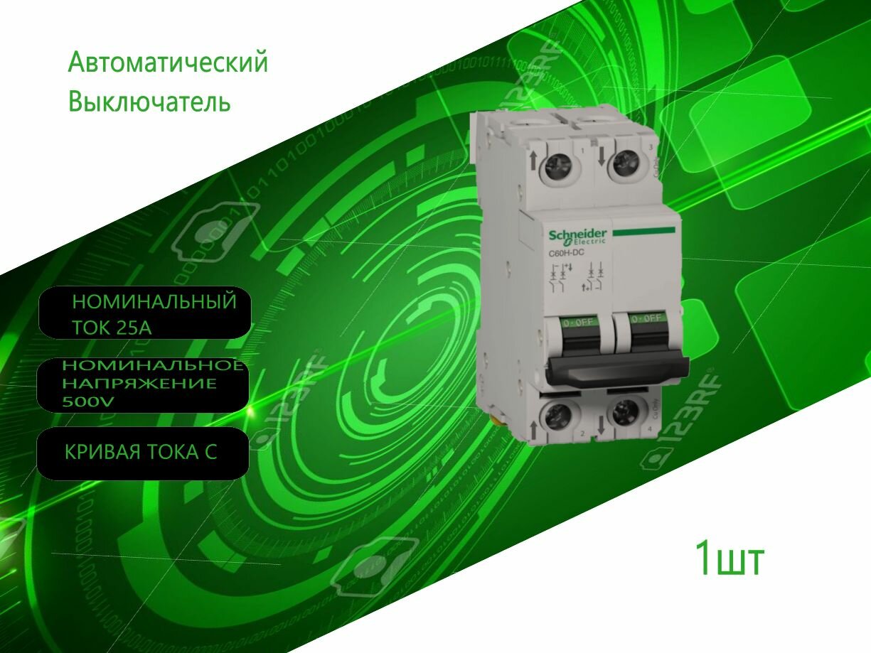 SE Acti 9 C60H-DC Автоматический выключатель 2P 25A (C) 500В DC, Schneider Electric, A9N61533 информация: