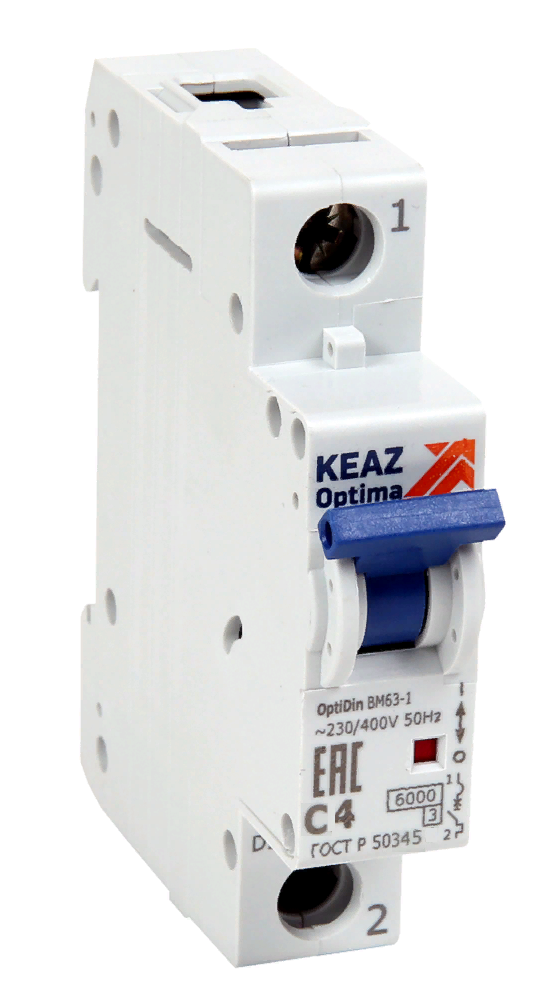 Выключатель автоматический модульный 1п C 1А 6кА OptiDin BM63-1C1-УХЛ3 КЭАЗ 260504 (1 шт.)