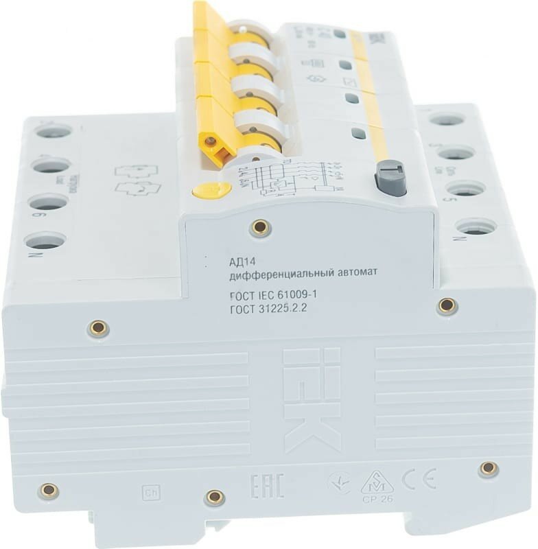 Выключатель автом. дифф. тока IEK АД14 MAD10-4-025-C-030 25A тип C 4.5kA 30мА AC 4П 230/400В 5мод бе