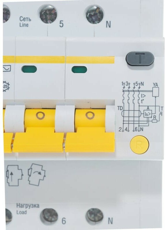 Дифференциальный автомат IEK АВДТ34 4П C 6 кА A электромеханический