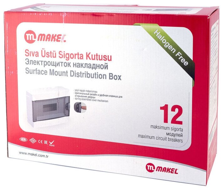 Щит распределительный навесной Makel ЩРН-П-12 пластиковый IP40 285х210х97 мм 12 модулей с DIN-рейкой и нулевой шиной