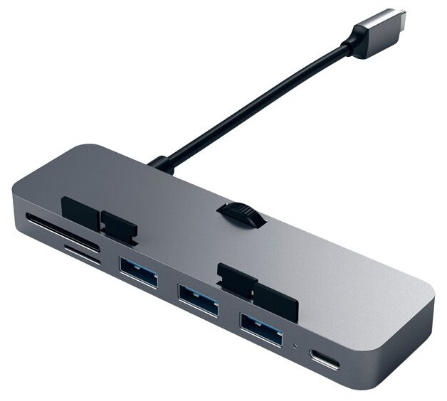 USB-концентратор Satechi Aluminum Type-C Clamp Hub Pro для new 2017 iMac и iMac Pro. Интерфейс USB-C. 3 разъема USB 3.0, 1 разъем USB-C, слоты для карты памяти SD, Micro SD. Цвет серый космос.