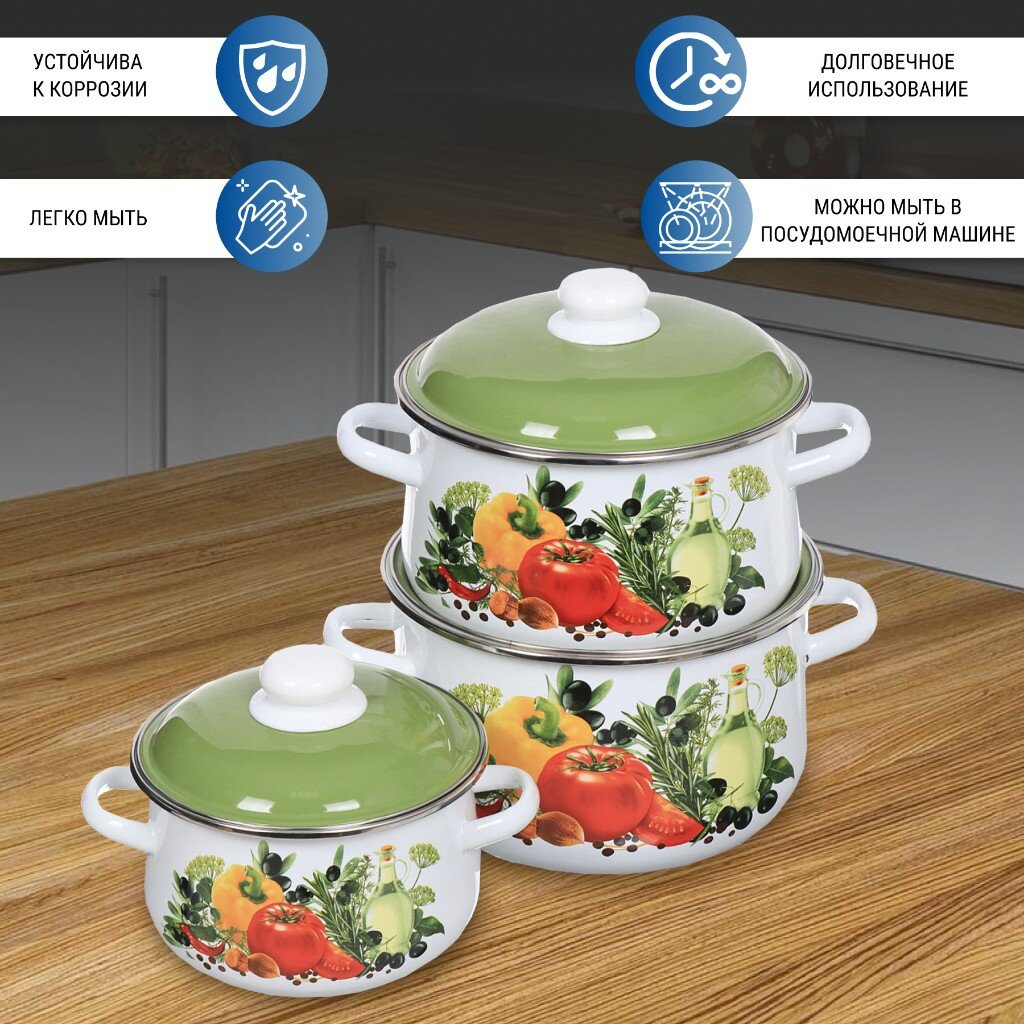 10 цен на Набор кастрюль эмалированных с крышками 2 л, 4 л, 5,5 л, СтальЭмаль