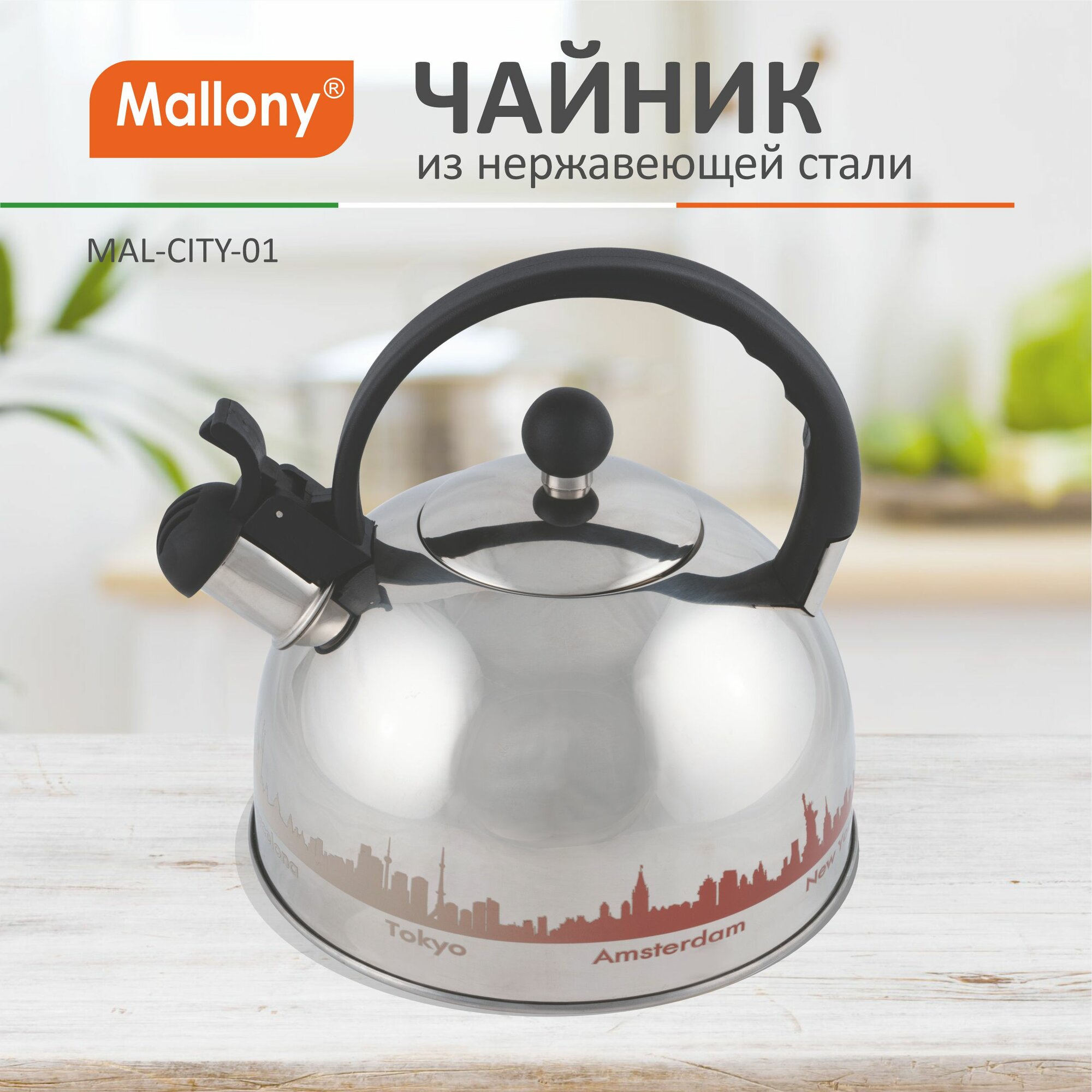 Mallony Чайник со свистком MAL-CITY-01, 2.8 л, серебристый