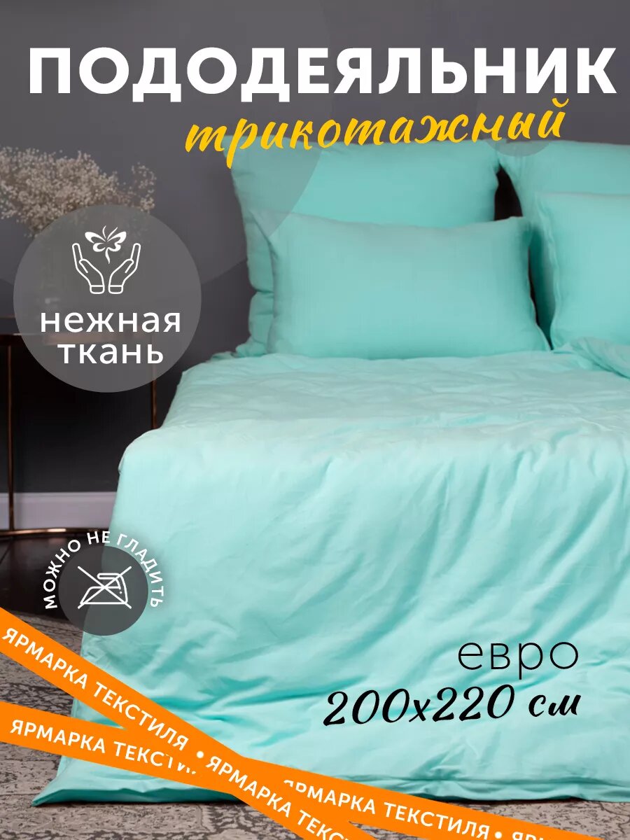 Пододеяльник евро KUPU-KUPU трикотажный на молнии 200х220 см, бирюзовый
