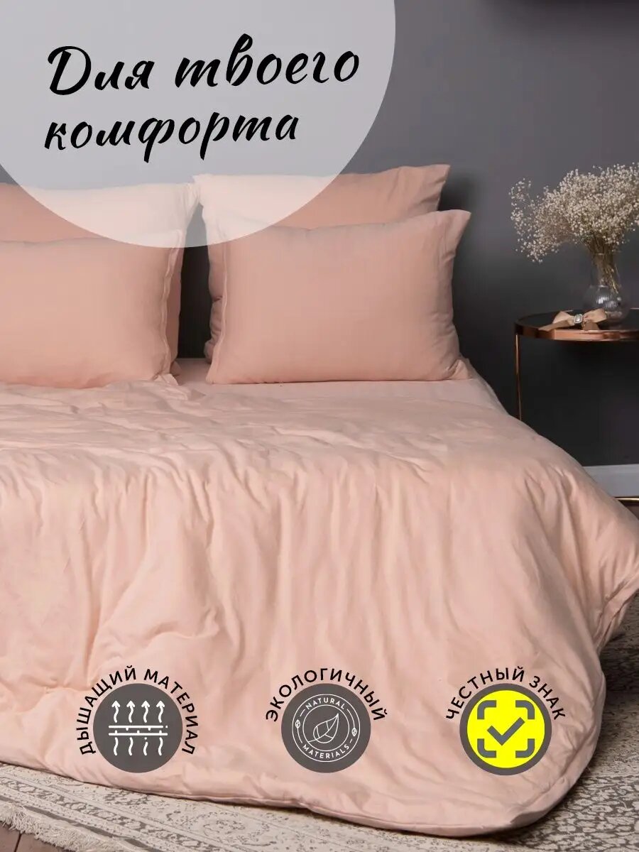 Пододеяльник 1.5 спальный KUPU-KUPU трикотажный на молнии 140х205 см, персиковый