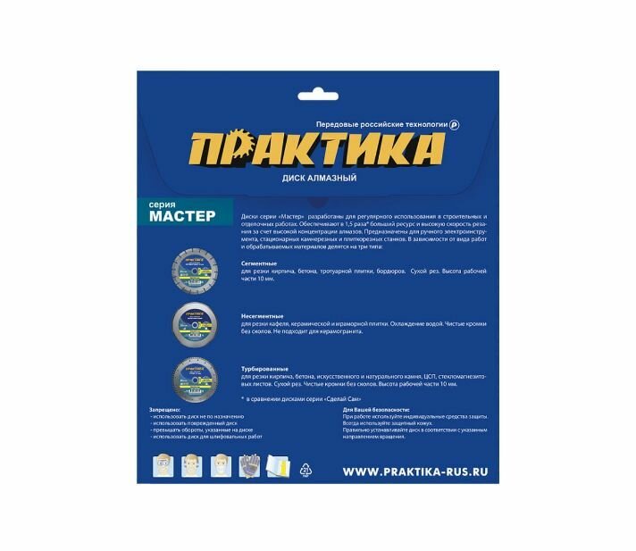 Диск алмазный отрезной ПРАКТИКА Мастер 030-757, 230 мм, 1 шт.