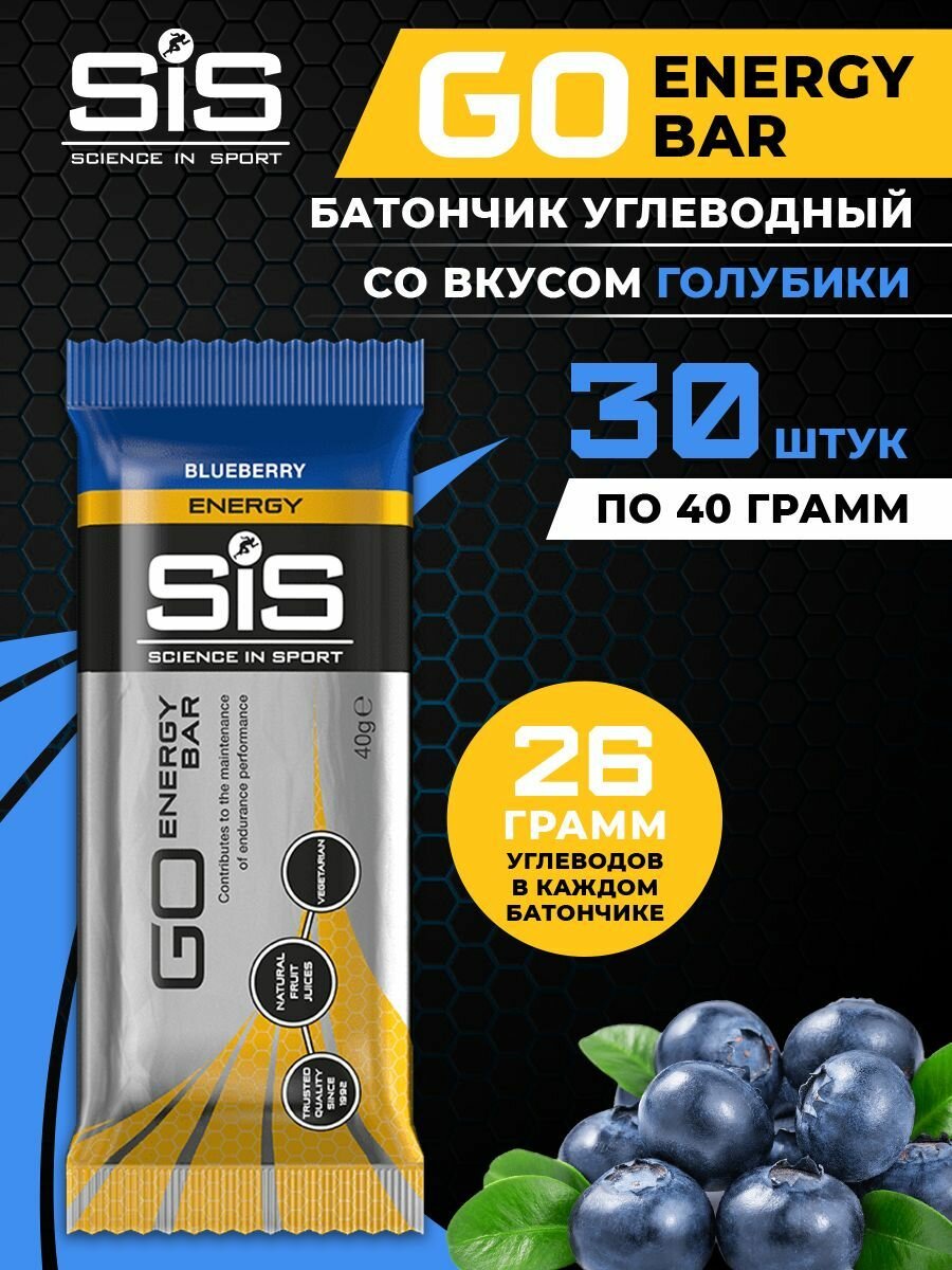 Углеводный энергетический батончик SiS GO Energy Bar, упаковка 30шт по 40г (Голубика)