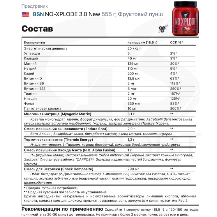 Мы выбрали 10 лучших цен на Предтренировочный комплекс N.O.-Xplode New Formula 3.3 555 гр 1.22lb (BSN) Фруктовый пунш. Перед тем как купить Предтренировочный комплекс N.O.-Xplode New Formula 3.3 555 гр 1.22lb (BSN) Фруктовый пунш посмотрите найденные предложения из Яндекс Маркета и других сайтов на основе XML фидов.