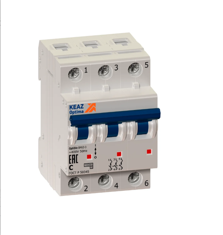 Выключатель автоматический КЭАЗ 3-полюсный (3P) 63А хар. C тип AC 6кА 260802 OptiDin BM63 (3 модуль)