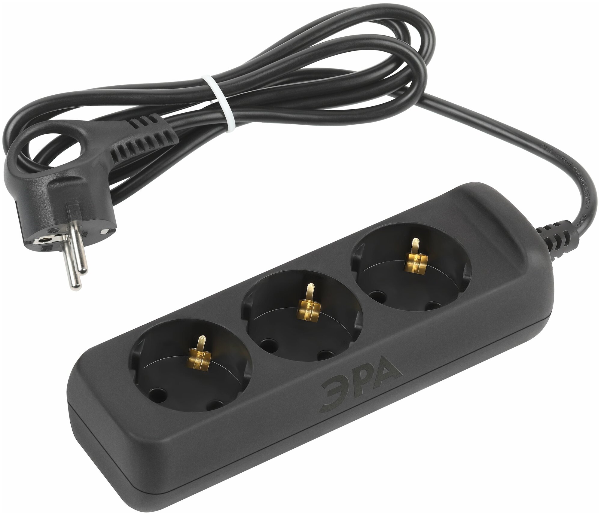 Удлинитель сетевой электрический с заземлением ЭРА UX-3e-1,5m-B 3 розетки, 1,5м, 10А, 3x0,75мм2
