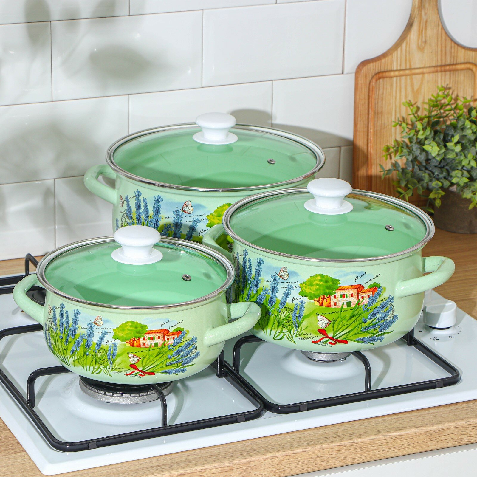 Набор кастрюль «Грациозный», 3 предмета: 1,5 л, 2 л, 3 л, стеклянные крышки 5 943 ₽