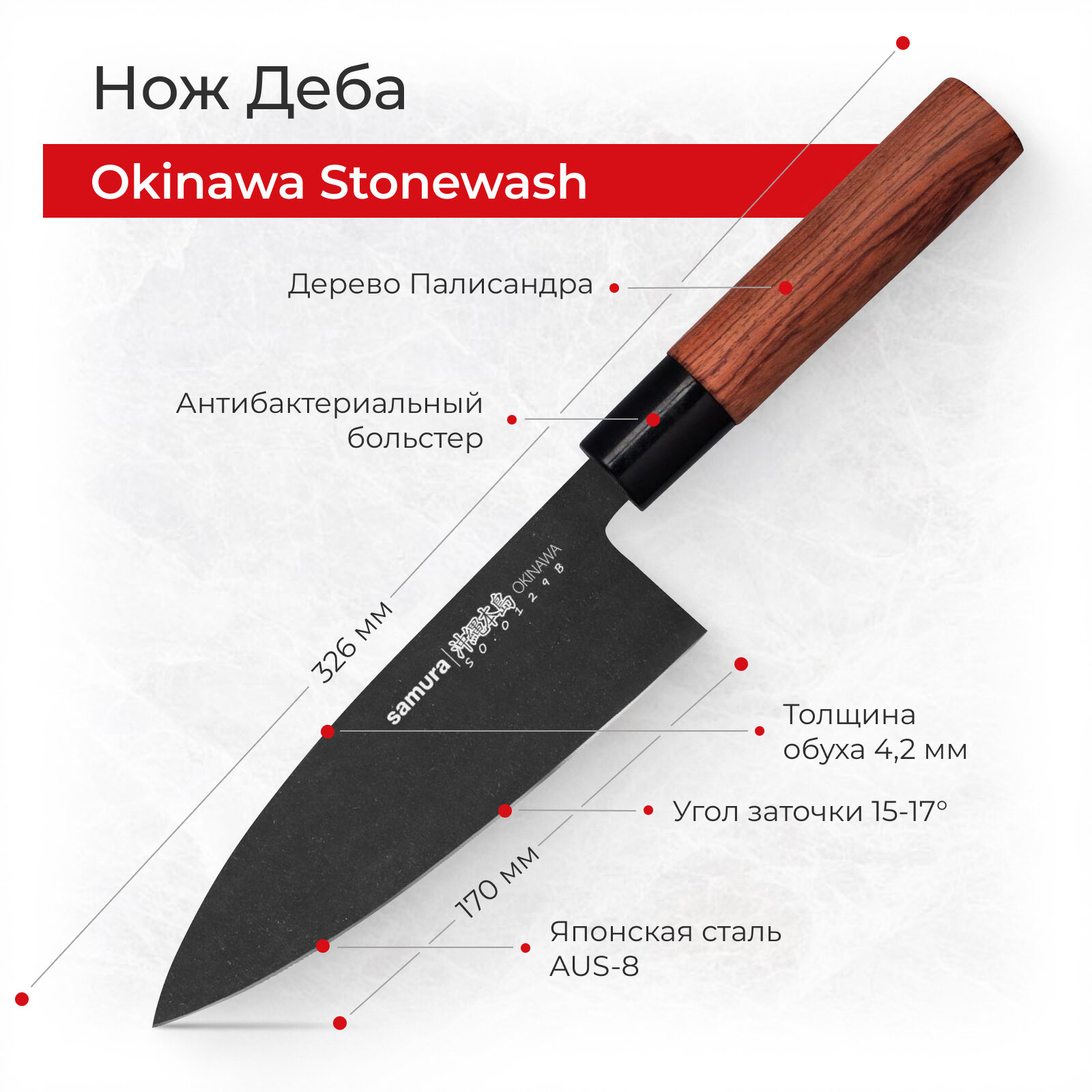 Нож кухонный Деба Samura OKINAWA Stonewash 170 мм SO-0129B информация: