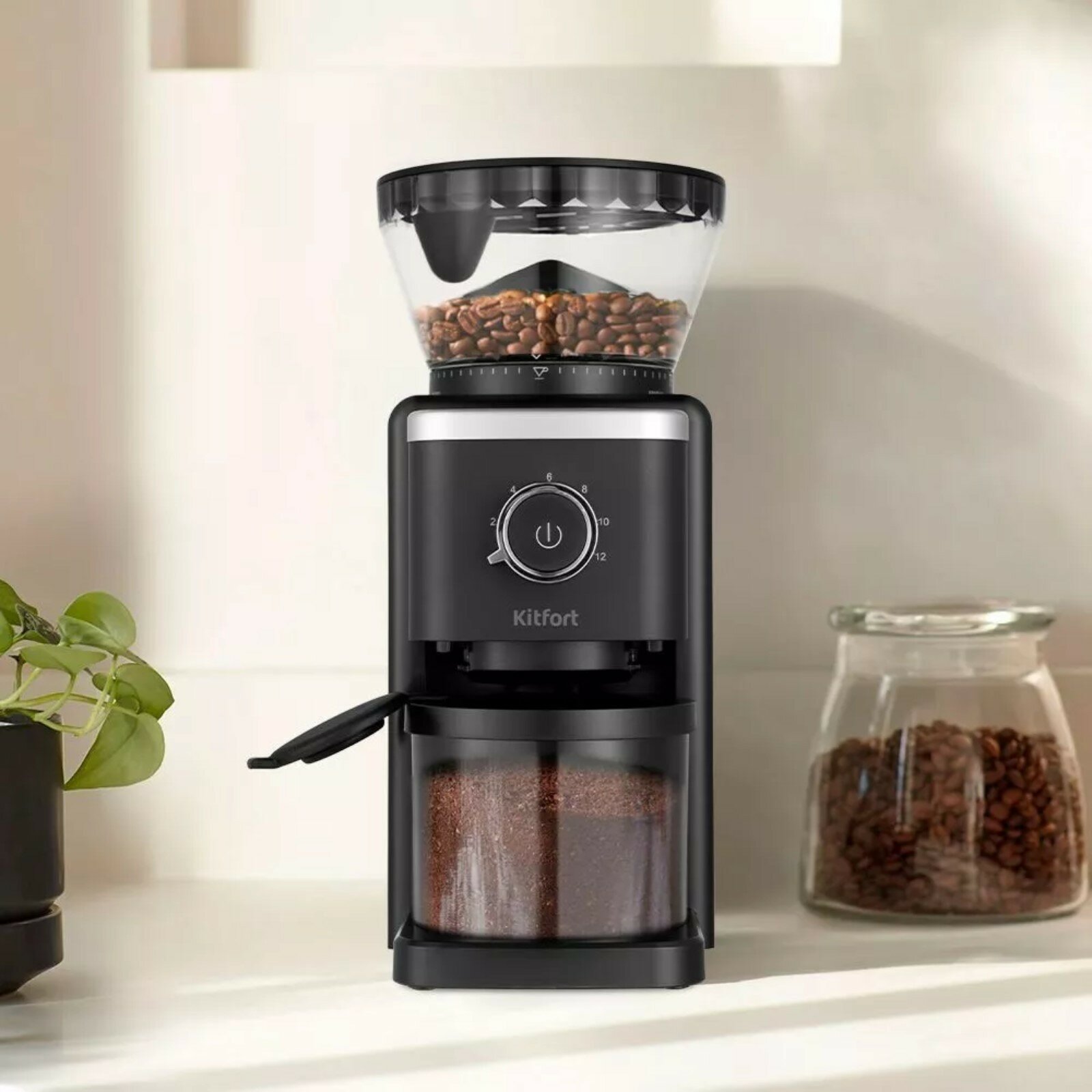 10 цен на Кофемолка Kitfort КТ-7167 200Вт сист.помол.:жернова вместим.:240гр черный