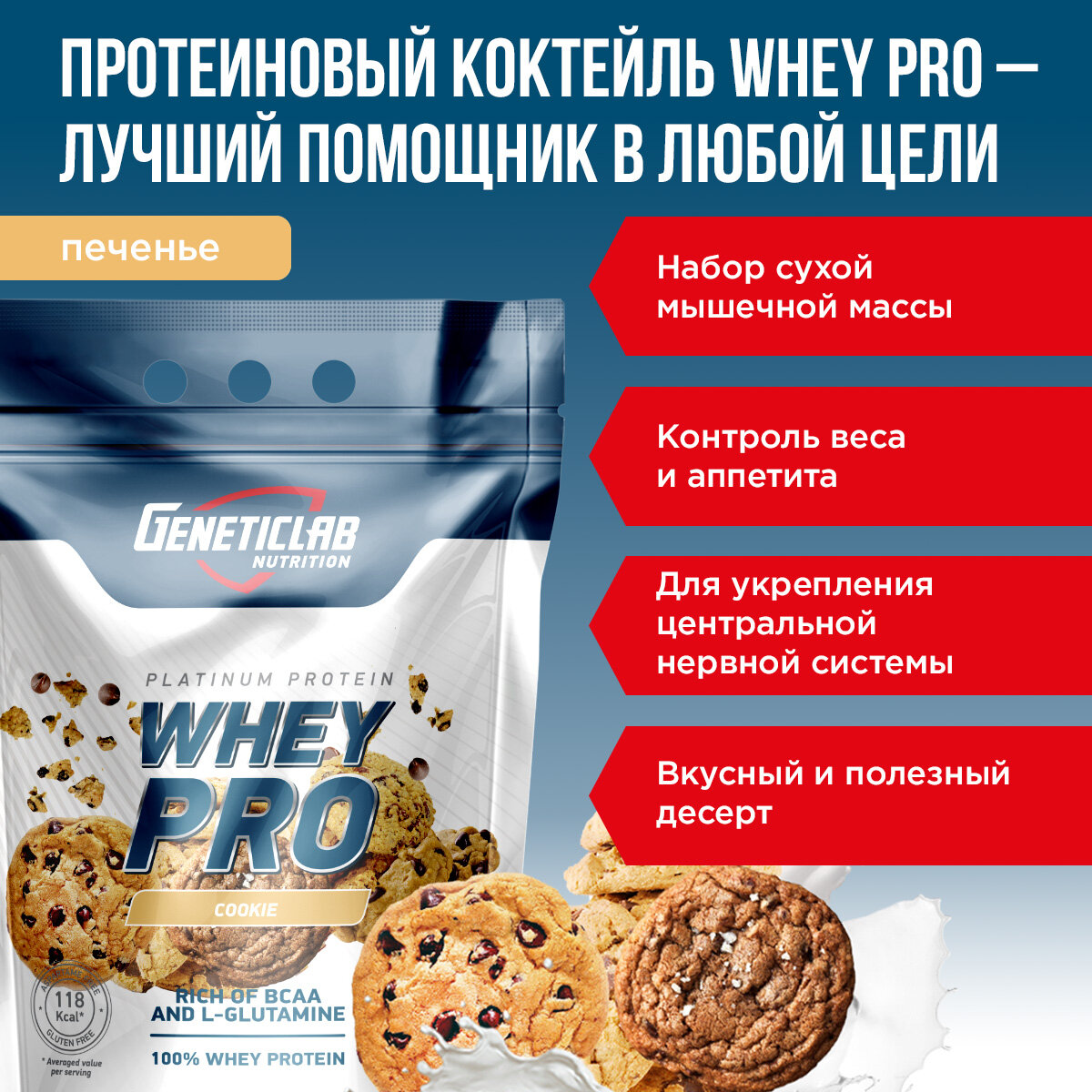 Протеин Geneticlab "WHEY PRO", печенье, 2100г информация: