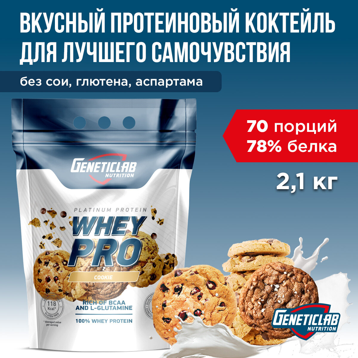 Сывороточный протеин GeneticLab Nutrition, Whey Pro, 2100 грамм, Россия, Печенье
