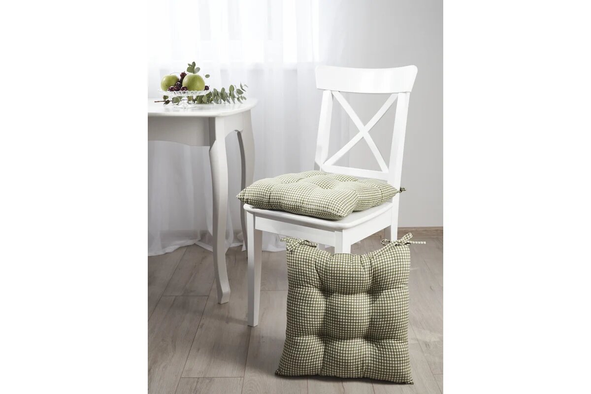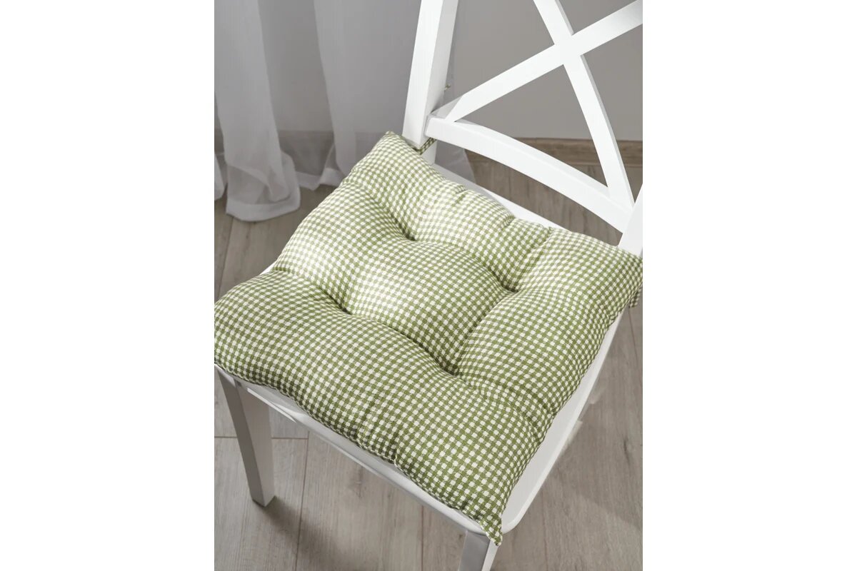 Подушка на стул высокая цвет: Клетка зеленая 40х40 см 450 ₽
