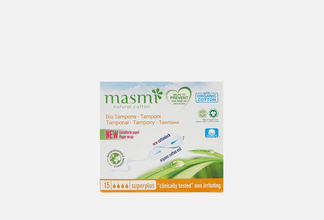 10 цен на Тампоны Masmi Natural Cotton Super Plus из органического хлопка 15шт