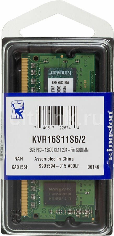 10 цен на Kingston DDR3 SODIMM 2GB KVR16S11S6 2 PC3-12800, 1600MHz