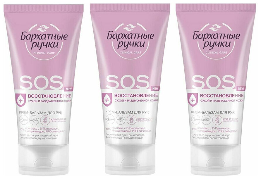 Бархатные ручки Крем-бальзам для рук SOS восстановление, 45 мл, 3 шт информация: