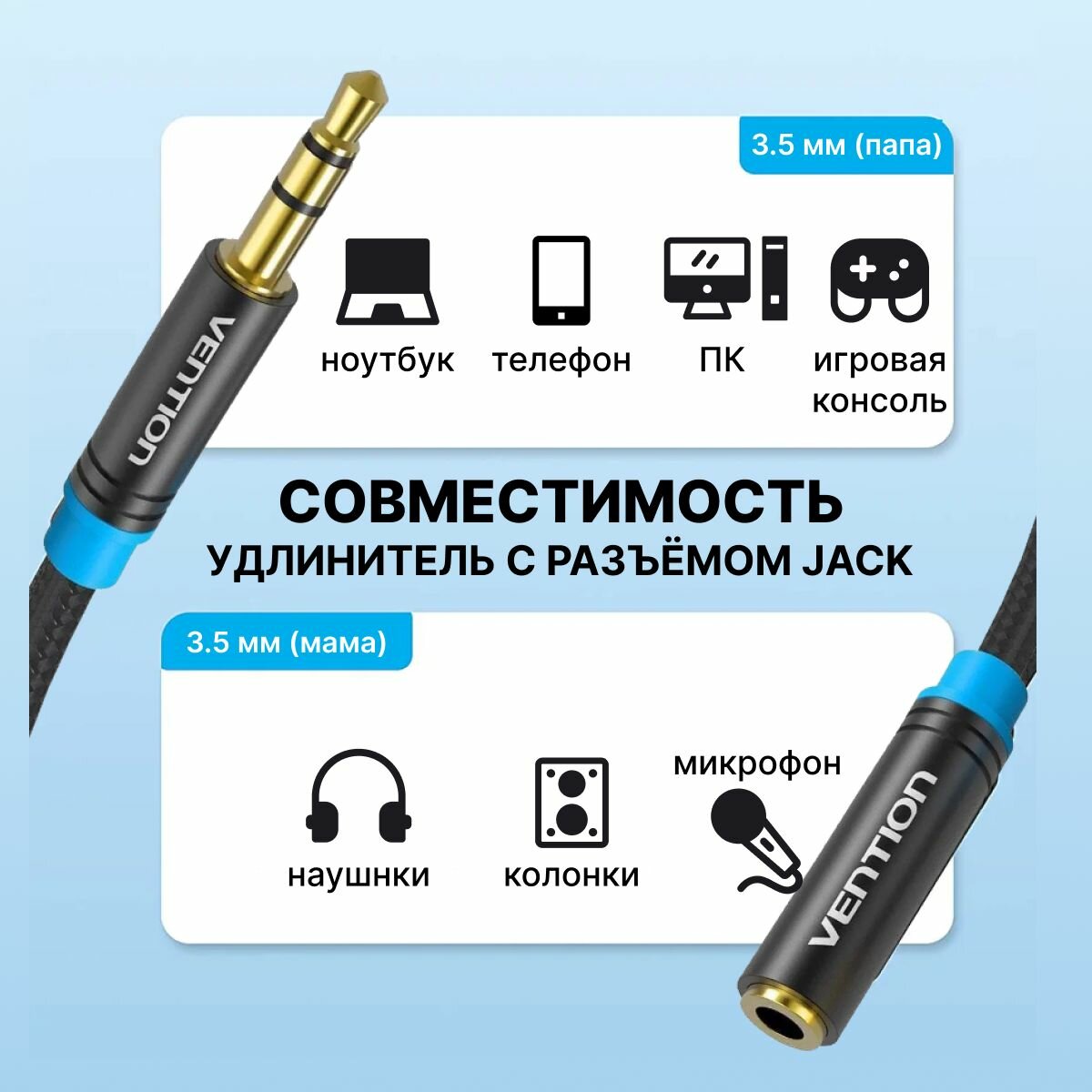 Vention (vab-b06-b100-m) Кабель удлинительный Jack3.5-M --) Jack3.5-F 1м