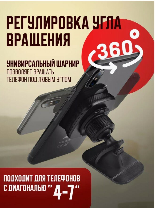 Держатель для смартфона в авто CA24, 4.5-7", магнитный, до 500 грамм, черный 542 ₽