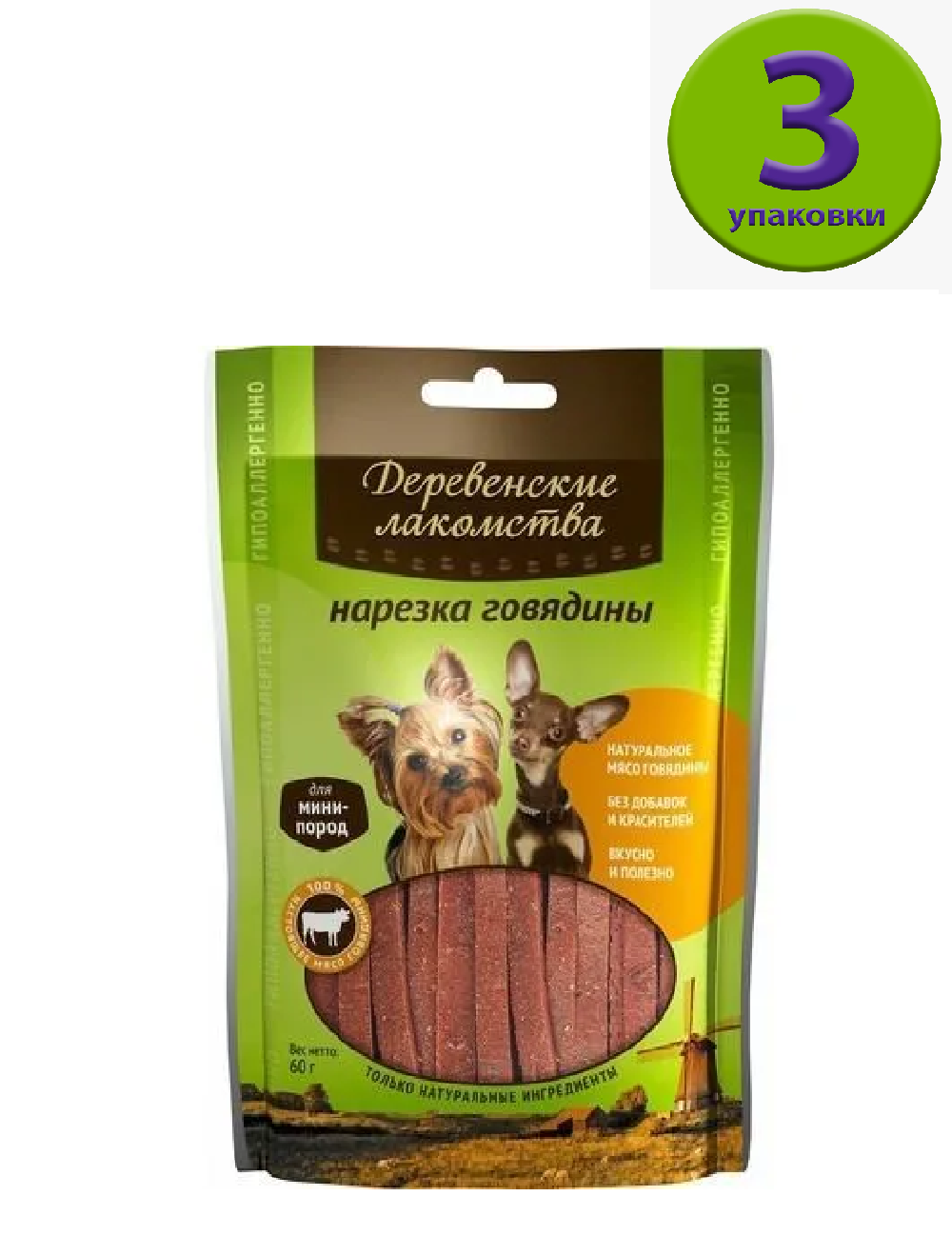 10 цен на Деревенские лакомства для собак мини-пород Нарезка говядины, 55 г, 3 шт