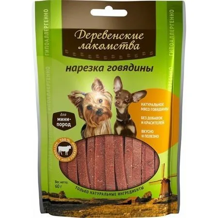 Лакомство для собак деревенские лакомства мини пор.нарез.говяд 60г
