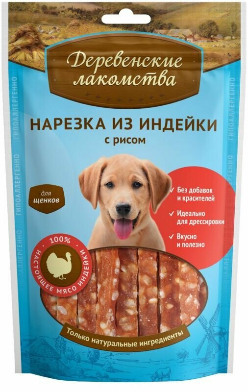 Деревенские лакомства "Нарезка из индейки с рисом" лакомство для щенков 85 г.