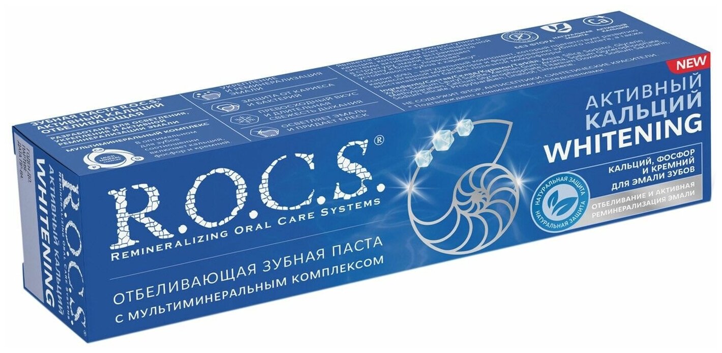 10 цен на Рокс, Зубная паста Активный Кальций Отбеливающая, 94 г