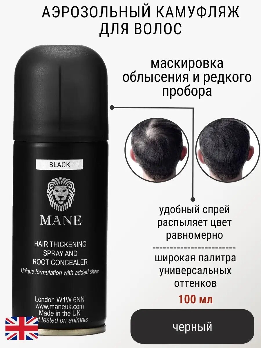 Mane Камуфляж для волос аэрозольный Black черный, 200 мл 1 шт 5 369 ₽