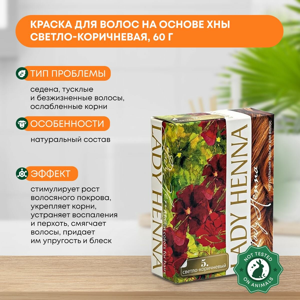 Краска для волос на основе хны "Светло-коричневый" (№5) LADY HENNA 60 г