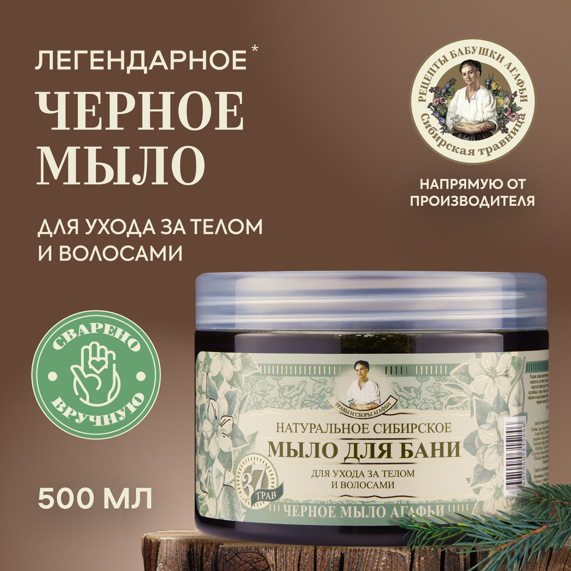 10 цен на Черное мыло для бани Рецепты бабушки Агафьи "Травы и сборы" густое для волос и тела 500 мл