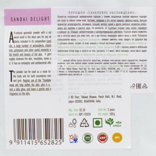 Индийская Маска-скраб Сандаловое Наслаждение Indibird 100г информация: