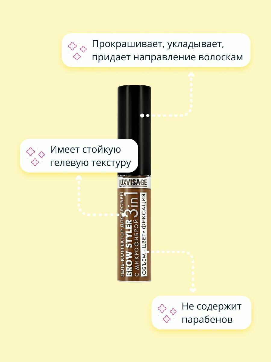 Люксвизаж Brow Styler 3 in 1 Гель-корректор для бровей стойкой фиксации оттеночный с микрофиброй, 03 мокаччино, 6г / уход за лицом для женщин