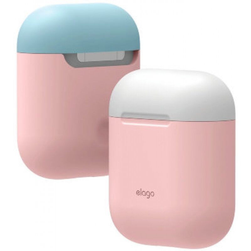Силиконовый чехол Elago Duo Case для AirPods 1&2, цвет Голубой с Белой и Розовой крышками (EAPDO-PBL-PKWH)