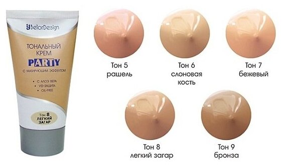 party / Белор дизайн пати крем тональный для лица 5 рашель для любого типа кожи с экстрактом алоэ-вера 42г / матирует и выравнивает SPF10