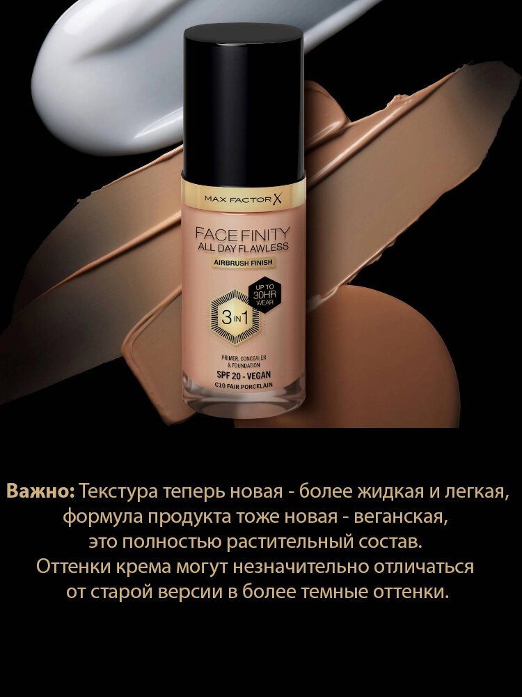 10 цен на Max Factor тональный крем FACEFINITY ALL DAY FLAWLESS 3 IN 1 VEGAN FOUNDATION C35 PEARL BEIGE