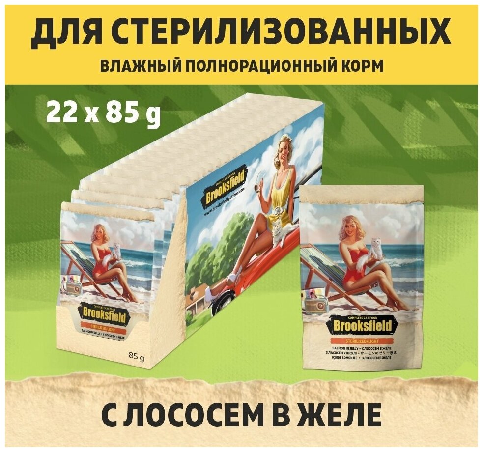 10 цен на Brooksfield Sterilized and Light Salmon пауч для стерилизованных кошек Лосось в желе 85г (22 шт)