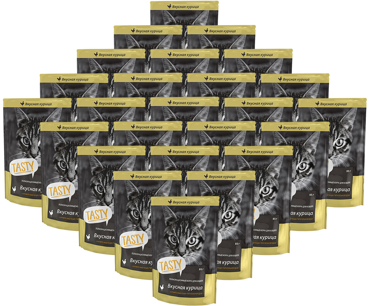 TASTY корм консервированный для кошек с курицей в желе пауч 85г (25шт.)