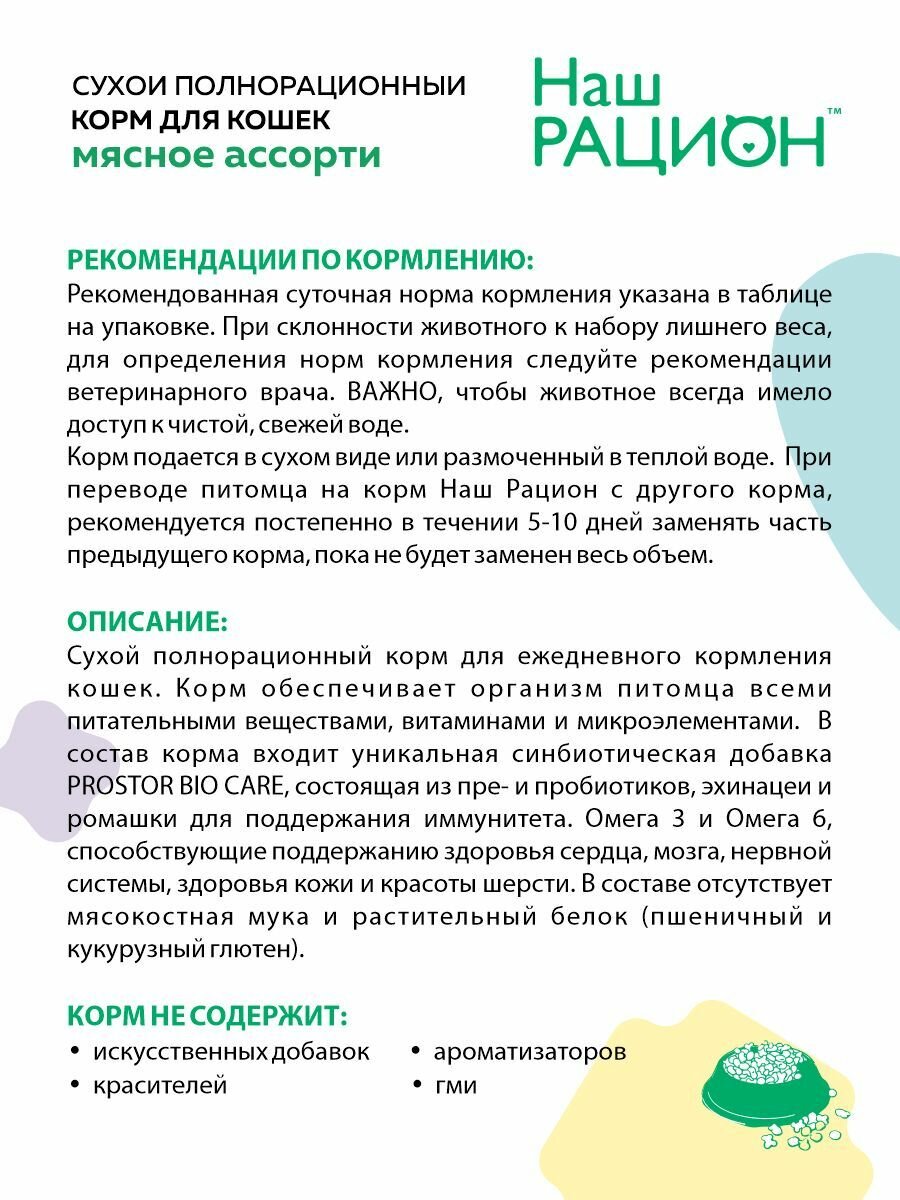 Корм сухой Наш Рацион для кошек Мясное Ассорти 10 кг информация:
