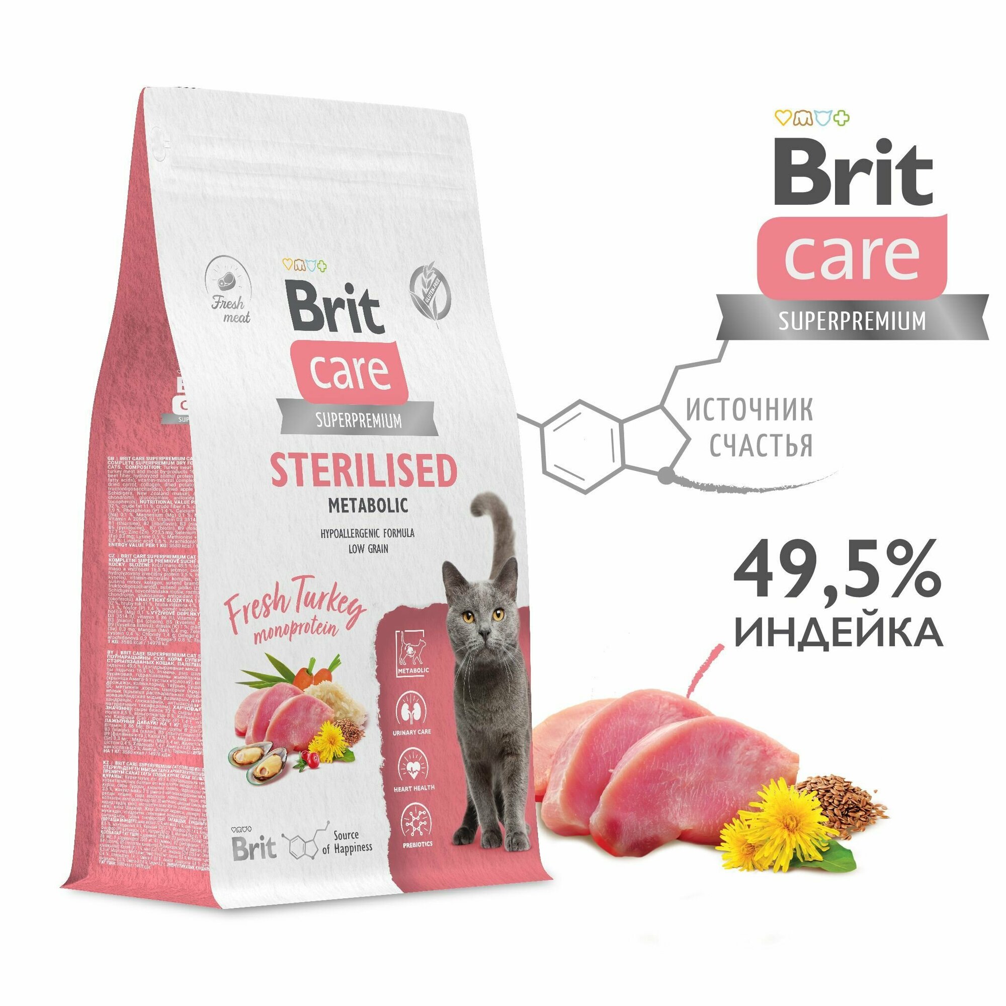BRIT CARE, Сухой корм с индейкой для стерилизованных кошек "Cat Sterilised Metabolic", 1.5 кг