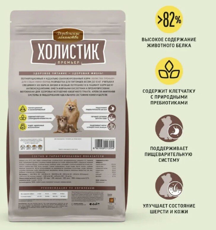 Деревенские лакомства Холистик Премьер сухой для собак мини-пород Утка с рисом 1кг информация: