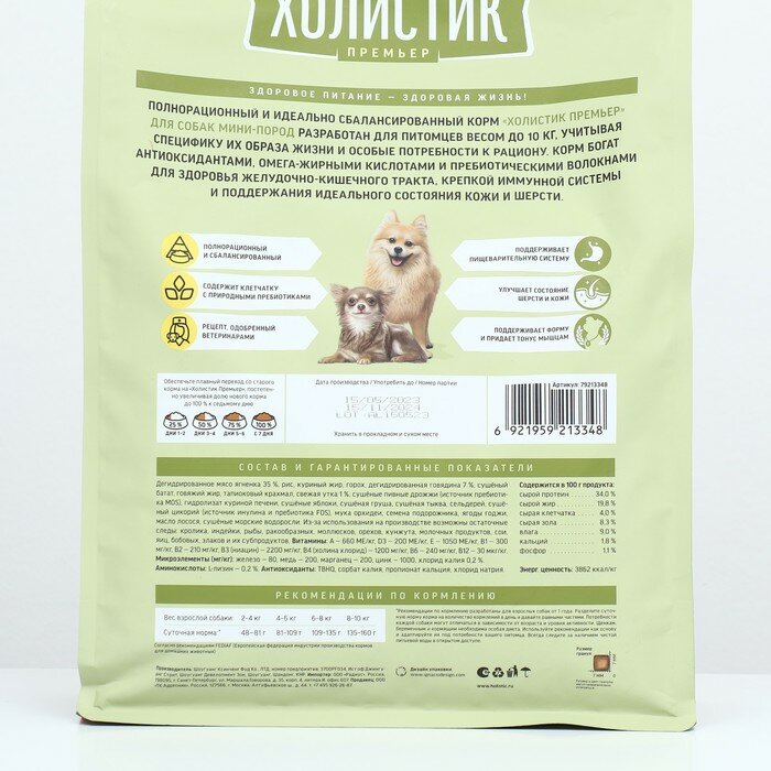 Сухой корм для собак Деревенские лакомства Холистик Премьер для мини пород ягненок с рисом 3 кг информация: