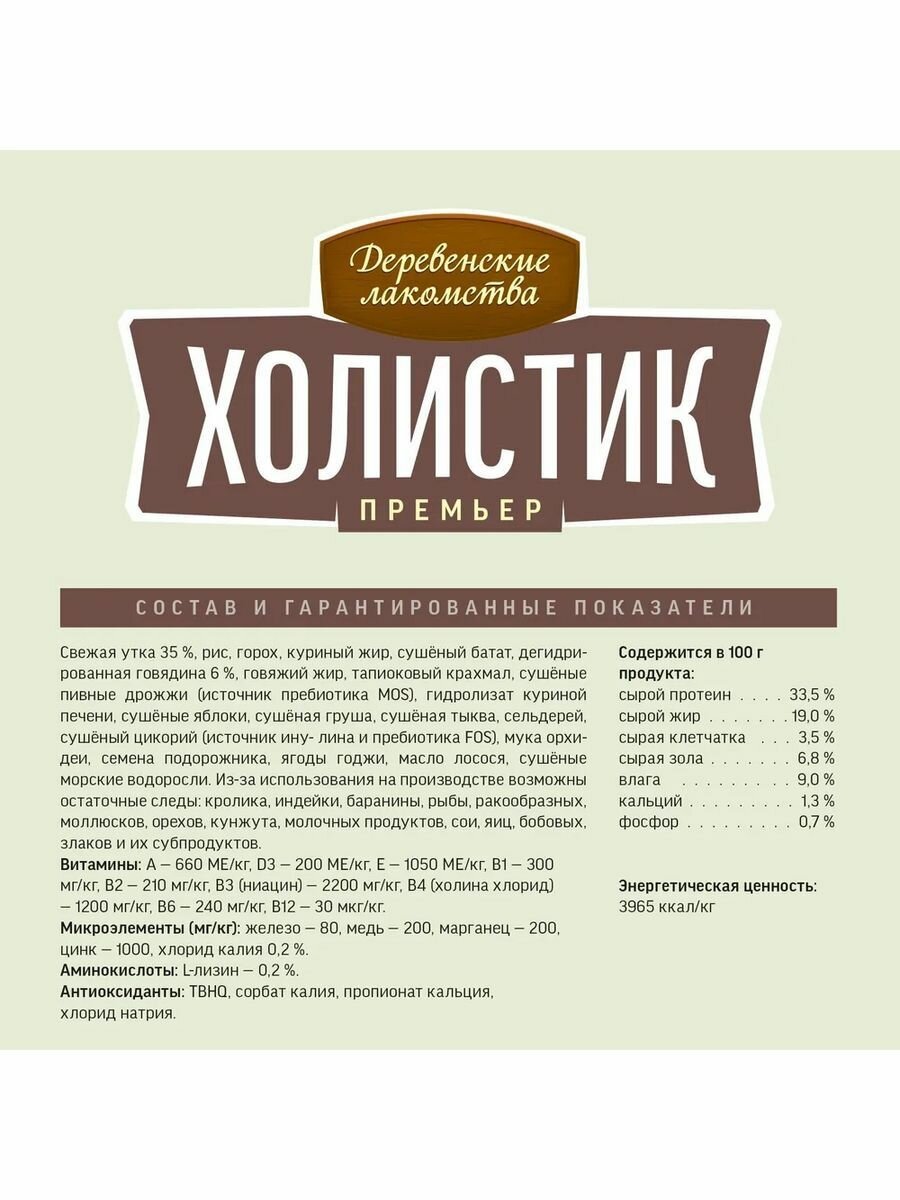 Деревенские лакомства Холистик Премьер для собак мини-пород Утка с рисом 1кг информация: